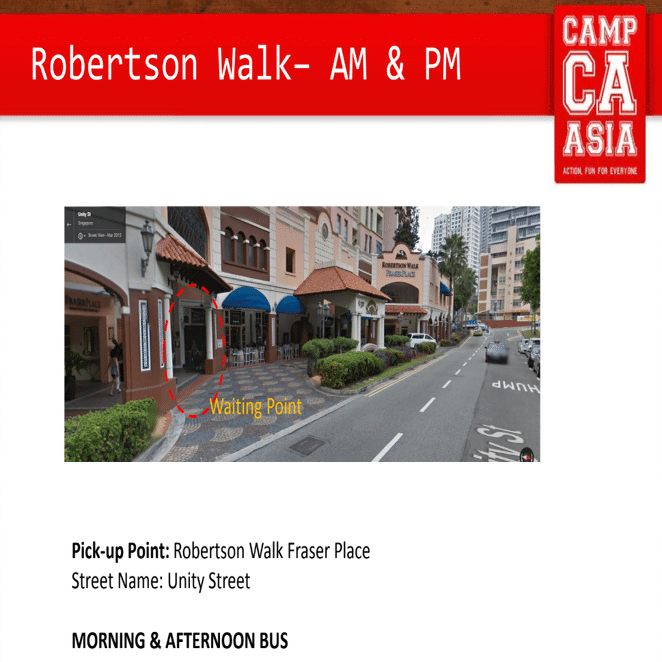キャンプアジアのスクールバスは、滞在先にはピックアップに来てくれません。